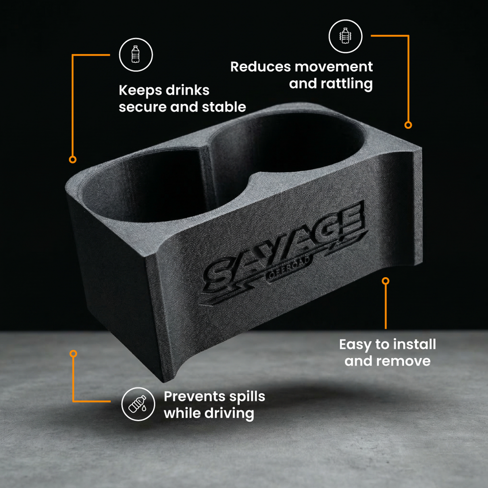 Say goodbye to spills and clutter – with our SAVAGE Cup Holder Inserts, you’ll enjoy a more practical and polished driving experience.