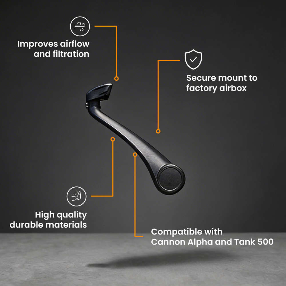 Take your adventures to the next level with the Savage Forward-Facing Snorkel, designed for both the GWM Cannon Alpha and the Tank 500. Engineered for performance, durability, and style, this snorkel mounts directly to the factory airbox for a secure and seamless fit, no matter the terrain.